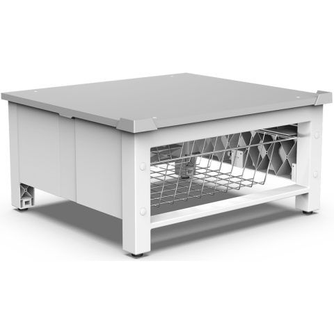 A készüléket 30 cm-rel megemeli a talajtól Maximális kapacitás (kg): 250 6 méteres biztonsági pánttal, fém csattal és 4 állítható magasságú lábbal 60 × 60 cm méretű készülékekhez (a készülék lábai nem foglalhatnak el 55 cm-nél nagyobb mélységet) Kivehető kosár (32 l)