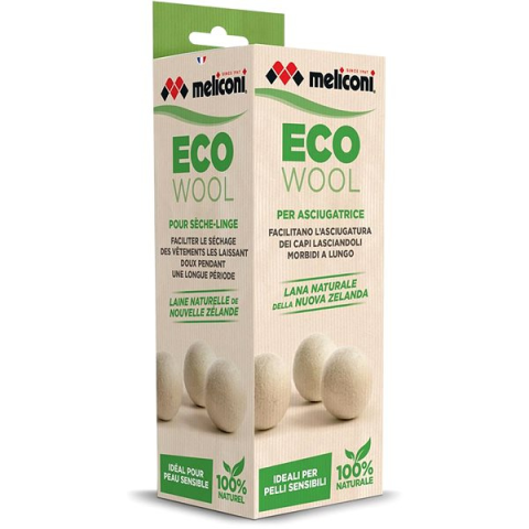 Szárítólabda - gyapjú, sima felületű, labda átmérője 70 mm, 3 db a csomagban, csökkenti a szárítási időt és lágyítja a ruhákat, antibakteriális és alkalmas érzékeny bőrűeknek, A MELICONI green line gyapjúgolyókat kifejezetten szárítógéphez tervezték. 100%-ban új-zélandi gyapjúból készült, és természetes textilpuhítóként működik minden típusú szövethez. A golyók jelentős