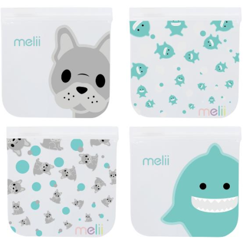 1 kép Melii Bulldog és cápa újrafelhasználható uzsonnás tasakok, 4 db (790693212100)