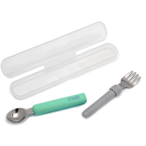 Melii Gyermekvilla és kanál tokkal - szürke/menta (790693112509) tányér és evőeszköz 1 kép