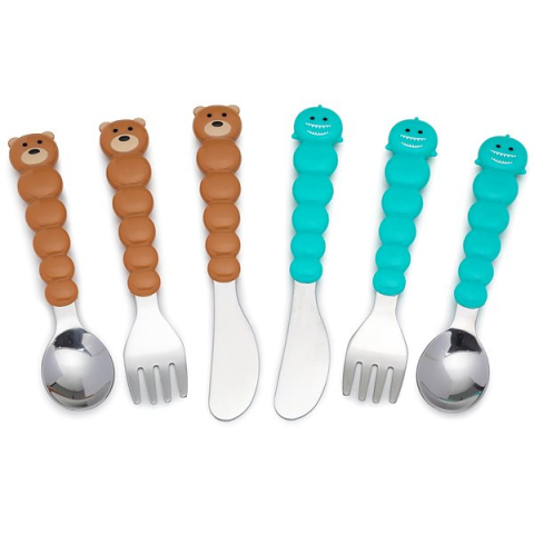 1 kép    Melii Mackó és cápa evőeszközök, barna/kék 6 db