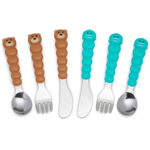 Melii Mackó és cápa evőeszközök, barna/kék 6 db (790693162009)