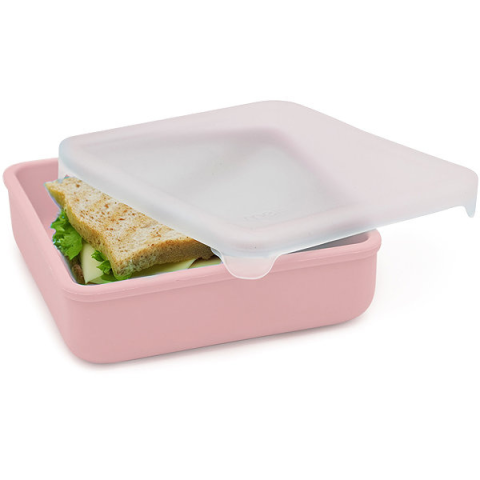 Uzsonnás doboz - gyerek, űrtartalma 0,79 l, mérete 4,5 × 16,5 × 16 cm (Ma×Sz×Mé), ráhelyezhető fedél, alkalmas mosogatógépbe és mikrohullámú sütőbe, anyaga szilikon, rózsaszín és áttetsző kivitel A minőségi Melii uzsonnás doboz a ráhelyezhető fedéllel kényelmesen nyitható és zárható, és 0,79 l nagyságúra lett tervezve. Ez a belső elrendezés nélküli uzsonnás doboz szabad teret biztosít a tárolá
