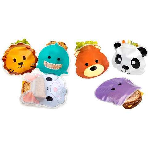 Ételhordó táska - 6 darabos készlet állatmotívumos táskákból, mosható, újrafelhasználható, Dupla cipzár, méretek 22 × 18 × 0,7 cm A kanadai Melii márka újrafelhasználható uzsonnás zacskói jelentősen csökkentik az eldobható műanyag zacskók használatát. A gyerekek imádni fogják a vonzó állatos dizájnt, és még nagyobb kedvvel fogjá