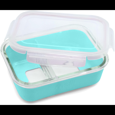 Melii Üveg ebédtartó, szilikon tokkal, kék (790693169619)