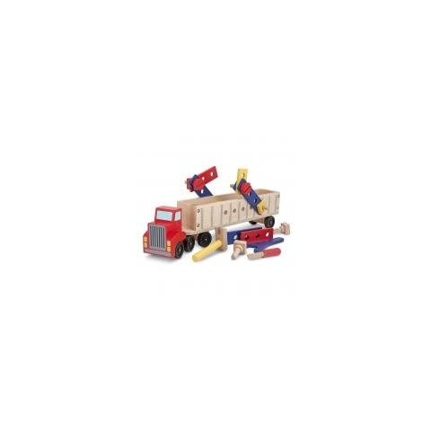 Ez a tartós, kétrészes pótkocsis autó útra kész... és készen áll az építkezésre! Megrakodva fa építési anyagokkal, és ellátva a csavarok és anyák számára előre megfúrt lyukakkal, a kamion egy valódi mozgó építési terület. Illeszd a festett építőelemeket a