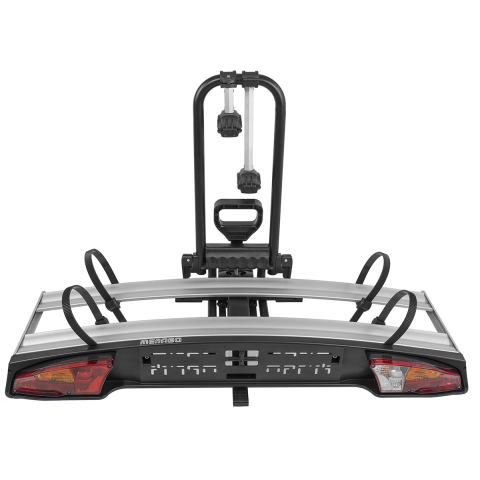MENABO Alcor 2 kerékpártartó vonóhorogra. Elegáns kialakítású, felsőkategóriás kerékpárszállító max. két biciklihez. Alumínium tartósínekkel felszerelt, melyekkel bármilyen típusú kerékpárt szállíthat, legyen szó akár MTB, E-Bike vagy FAT-Bike kerékpárokról. Gyorsan szerelhető, lábbal dönthető, zárható.