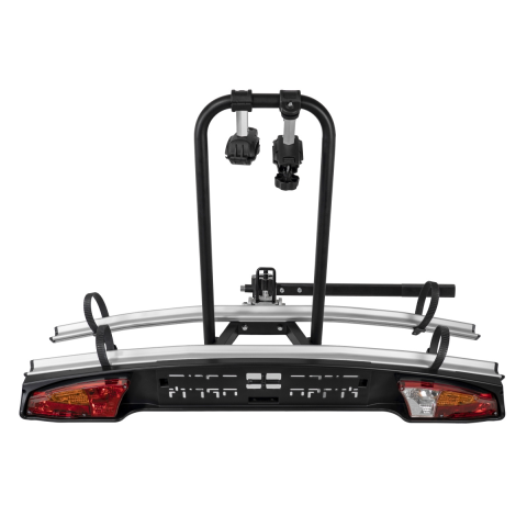 MENABO Merak Rapid kerékpártartó vonóhorogra. Alumínium tartósínnel felszerelt, elegáns vonóhorogra szerelhető kerékpártartó, mely 2 kerékpár vagy 1 E-Bike szállítására alkalmas. A szállítókapacitás opcionális adapterrel három kerékpárra növelhető. Dönthető, zárható, így kerékpárokkal terhelt állapotban is nyitható a hátsó ajtó. A rögzítőkar lenyomásával, szerszám nélkül felszerelhető.