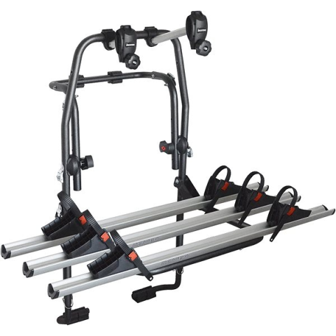 Kerékpárszállító hátsó ajtóra - 3 kerékpárhoz, teherbírása 45 kg, max. abroncs szélesség 2,76", max. tengelytávolság 1100 mm, 50 mm kerékpár váz átmérőhöz, max. sebesség 130 km/h, lehajtható, kerékpártartó tömege 11,6 kg, TUV tanúsítvány Praktikus hátsó tartó 3 kerékpárnakA MENABO STAND-UP 3 prémium minőségű olasz kerékpártartó alacsony tömegű és rendkívül tartós alumínium anyagból készült, maximum három kerékpár egyidejű szállítására