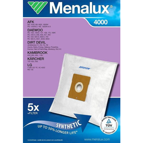 Porzsák Menalux - textil, egyszer használatos, szűrő a csomag része, 5 porzsák a csomagban A kiváló minőségű Menalux 4000 porzsák főbb paraméterei A népszerű MENALUX porzsákja biztosítja a porszívó számára a stabil szívóteljesítményt, amíg az meg nem telik porral és szennyeződéssel A porzs