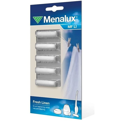 Porszívó illatosító - len illatú, rudacskák, 5 db /csomag A Menalux MF LI porszívózás közben finoman illatosítja a helyiséget. A csomagolás tartalma 5 darab frissítő len illatú pálcika. Egyszerűen helyezd a pálcikát a porszívóba, melynek
