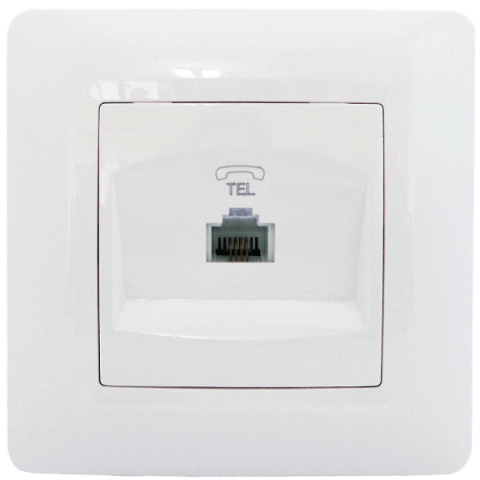 ECOMAX telefoncsatlakozó fehér színben. Anyaga műanyag.