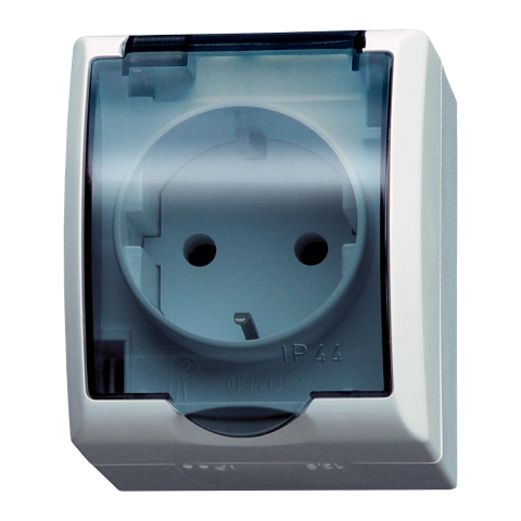 Fala földelt csapfedeles dugalj. A fedéllel ellátott aljzat 1 fogyasztó csatlakoztatására alkalmas. Elhelyezése: korlátlan. Névleges feszültség: 250V. Névleges áram: 16A. Védettség: IP20. Csavaros bekötésű. Sorolhatóság: monoblokk. Anyaga műanyag. Teljesítmény: 3,52 kW.