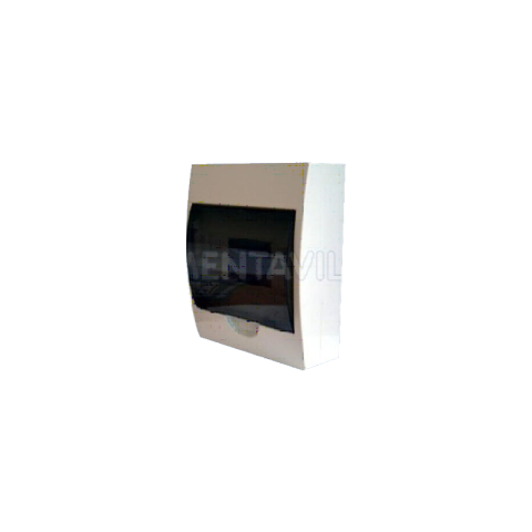 Műanyagból készült, fehér színű, átlátszó ajtóval felszerelt lakáselosztó. IP42 védettségi szintű a termék. Modulok száma 6. Anyaga műanyag.