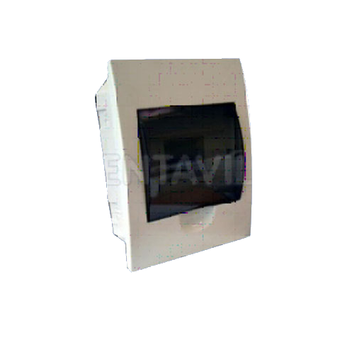 Műanyagból készült, fehér színű, átlátszó ajtóval felszerelt lakáselosztó. IP42 védettségi szintű a termék. Modulok száma 4. Süllyesztett kivitelben készül.
