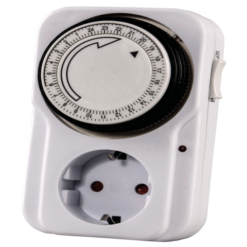 24 órás, mechanikai programozhatóságú időkapcsoló. Egyszerű kezelhetőség. LED-es visszajelzés. A beltéri mechanikus időkapcsoló negyedóránként állítható és kézi be-, illetve kikapcsolási lehetőséggel rendelkezik. Használata biztonságos, gyermekvédelemmel van ellátva.