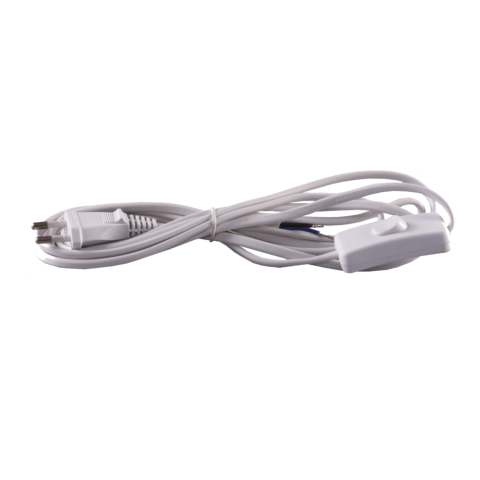Szerelt Euro csatlakozó vezeték közbeiktatott kapcsolóval, a kapcsoló a bekötési ponthoz esik közelebb. Lapos kettős szigetelt PVC kábel egyik végén földeletlen Euro csatlakozóval ellátva. Egypólusú kapcsolóval szerelve. Max. 2,5A áramfelvételű készülékek csatlakoztatásához. Fehér színben kapható. Teljes hossz: 250 cm, Kapcsoló-dugvilla távolsága 110 cm.
