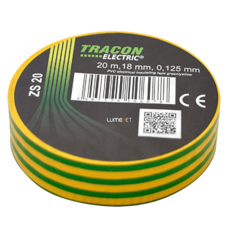 20 méteres, zöld-sárga színű szigetelőszalag. 1,8 cm széles.