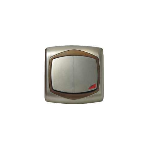 Ton jelzőfényes csillárkapcsoló, szatén színben. Egy fogyasztói csoport megosztott kapcsolására, illetve két különálló helyiség egy helyről történő fel - lekapcsolására alkalmas. Anyaga: műanyag.