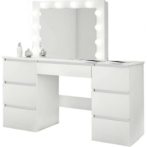 Mercaton Fésülködőasztal/smink, fényes fehér, tükörrel és LED-ekkel, Vanessa, 130x43x143 cm bútor termékleírás