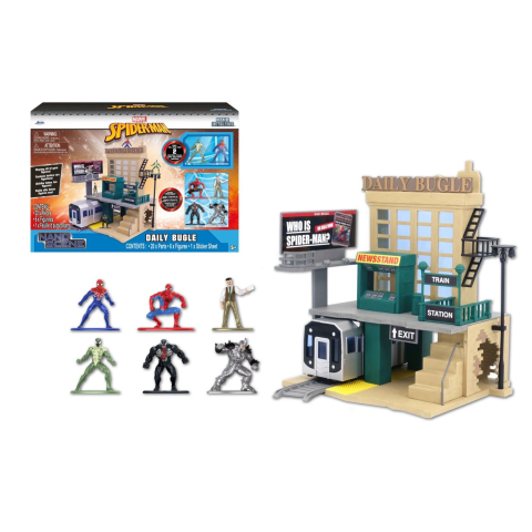 Jada Marvel Pókember Nano Figurák - New York City 🏙️ Gyűjtsd össze a 6 db, 4 cm magas, részletgazdag fém Pókember figurát, melyek New York City ikonikus helyszíneit idézik! Kiváló minőségű kidolgozás, aprólékos részletek és hűséges megjelenés jellemz...