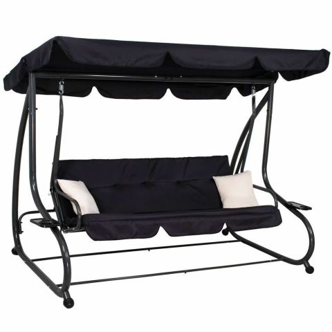 1 kép Mercaton Kerti hintaszék, 4 üléses, fekete, 220x120x162 cm, ágy funkcióval, Linda