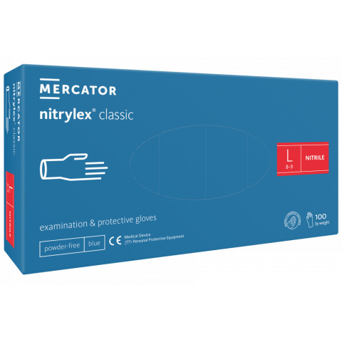 1 kép Mercator Medical Nitrylex Classic Blue Kék Púdermentes Nitril kesztyű - L