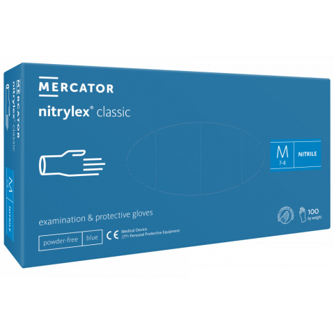 1 kép Mercator Medical Nitrylex Classic Blue Kék Púdermentes Nitril kesztyű - M