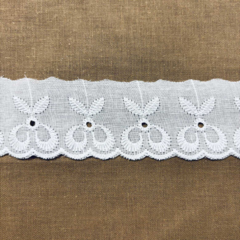 40 mm széles, fehér, hímzett szalag. Minimálisan rendelhető mennyiség 1 méter. 40 mm széles, madeira, hímzett szalag. Összetétel: 100% pamut.