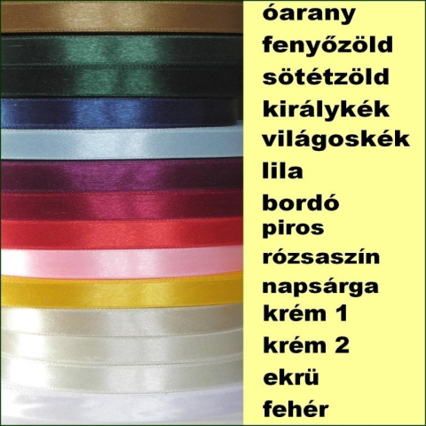 15 mm széles szatén szalag, díszkötöző. Maradék szalagok. 10 méter alatti mennyiségek. A szín és a méret a lenyíló ablakban választható ki. Szatén szalag, díszkötöző. Színoldala fényes, hátoldala matt.