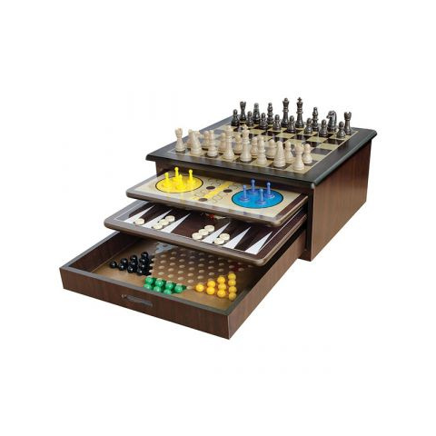 A Craftsman Deluxe táblás játékgyűjteményben 10 db társasjáték kapott helyet egy elegáns fa dobozban. A gyűjteményben az alábbi játékok találhatók: 1. Sakk, 2. Dáma játék, 3. Backgammon, 4. Mancala, 5. Tic Tac Toe, 6. Kínai dáma, 7. Kígyók és létrák, 8. Kocog és kidob, 9. Solitaire, 10. Passout. Az elegáns és tartós fadoboz mérete: 34 x 34 x 16 cm.