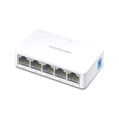 Switch otthoni használatra - desktop, unmanaged, 5× RJ-45, 5× 10/100Base-T, Auto-MDI/MDIX, auto-negotiation és plug and play, 1 Gb/s váltókapacitás, 5 port 100 Mbit sebességgel, üzemi hőmérséklet 0 - 40 °C, mérete 21 × 82 × 49 mm (Ma×Sz×Mé) A switch aktív egysége a hálózatnak, melynek kulcsfeladata az elektromos készülékek közti adatkapcsolat biztosítása. Hálózati adatforgalom ellátására gyártották. A minőségi Mercusys MS105 leginkább a