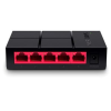 Switch otthoni használatra - desktop, unmanaged, 5× RJ-45, 5× 10/100/1000Base-T, Auto-MDI/MDIX, auto-negotiation és plug and play, 5 port 1 Gbit sebességgel, üzemi hőmérséklet 0 - 40 °C, mérete 25 × 105 × 70 mm (Ma×Sz×Mé) Mercusys MS105G 5 portos switch Öt 10/100 Mbps automatikusan kapcsolható RJ45 portMDI / MDIX támogatásKönnyű hálózati kapcsolatKompakt kialakításPlug and play beállításokNincs szükség konfig