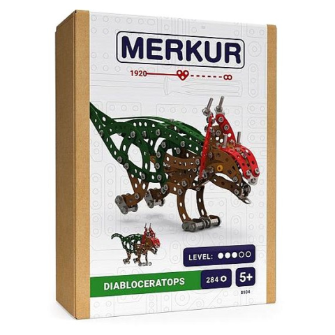 Építőjáték - 284 darabos készlet, téma dinoszauruszok, anyaga fém, ajánlott 5 éves kortól A Merkur Dino mini építőkészlet kollekciójából származó fém diabloceratops modell ideális készlet az 5 éves kortól kezdődő gyermekek számára a Merkur világába való belépéshez. A Merkur építőkészlet ik