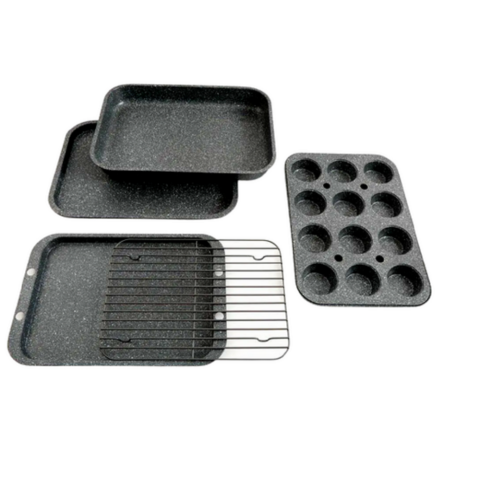 1 kép merystyle Tapadásmentes márványbevonatú 5 részes sütőkészlet, tepsi szett - RL-5RB