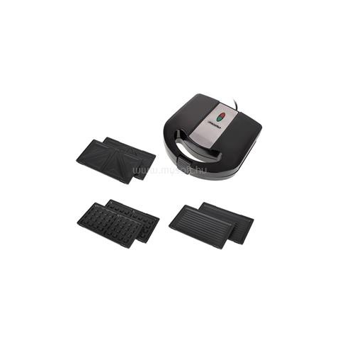 Praktikus 3in1 kenyérpirító maximális teljesítményével 1000W. A kivehető három fűtőlapnak köszönhetően a készülék lehetővé teszi ropogós gofri, finom szendvicsek, vagy grillezett zöldségek vagy hús elkészítését. A fűtőlemezek speciális bevonata megakadályozza a tapadást, így a készülék könnyen tisztítható. A termosztát jelzi a lemezek elégséges felmelegedését és biztosítja a megfelelő hőmérsékletet az egész pirítási folya