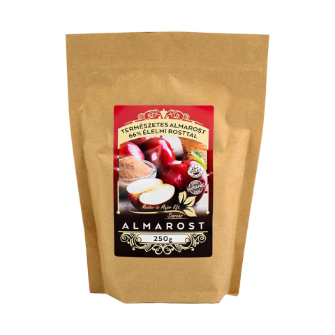 Természetes almarost, 66%-os élelmi rosttal. Az almarost nemcsak az alma húsát, héját, hanem az alma magházat és az almamagot is tartalmazza.