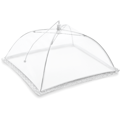 Fehér színű, négyzet alapú gyümölcstakaró háló.