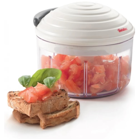 - Roto Mac univerzális szeletelő - Zöldségeket, gyümölcsöket apríthatunk a segítségével - Vágjuk fel az aktuális ételt és tegyük az aprítóba, majd a zsinórt húzogatva aprítsuk fel azt