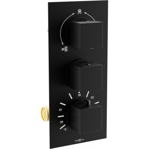 1 kép Mexen Cube 3 kimenetes termosztatikus kád-zuhanycsapok, Fekete - 77503-70