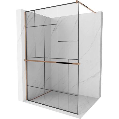 1 kép Mexen Kioto+ Walk-In Zuhanyfal - 110x200 cm - 8 mm Üveg - Fekete/Rózsaarany