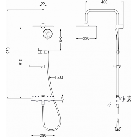 1 kép    Mexen KX40 beépíthetó kád-zuhany készlet fejzuhannyal és termosztatikus csapteleppel, Arany - 779004091-50
