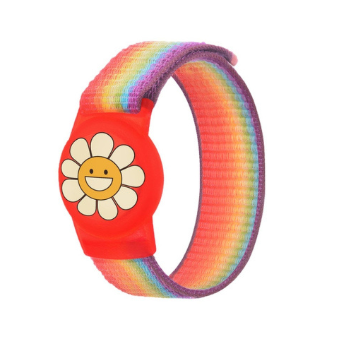 Apple AirTag Kids Nylon csuklópántos tok - virággal és szivárványos csíkkal Védd gyermeked biztonságban és stílusosan az Apple AirTag tokkal, amely egyesíti a funkcionalitást, a kényelmet és a vonzó dizájnt. A tartós nejlonból készült, könnyű kiegészí