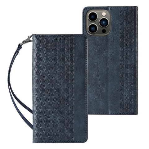 1 kép MG Magnet Strap bőr könyvtok iPhone 13 Pro Max, kék