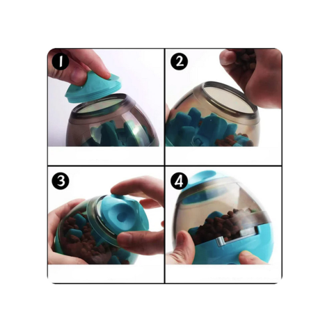 INTERAKTÍV KUTYAJÁTÉK CSEMEGEGOLYÓ Interaktív játék kutyáknak és macskáknak, amelyet minden háziállat élvezni fog. A tetején lyukak vannak, hogy kiengedje a finomságok illatát, ami játékra ösztönzi kedvencét. A tartály