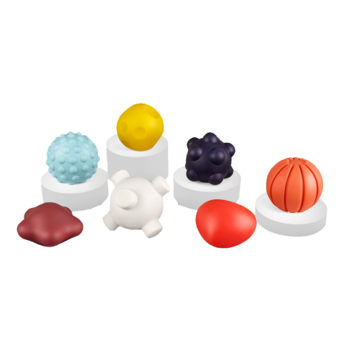 Információk A játék támogatja a kisgyermekek érzékeinek fejlődését. A gyermek fejlesztheti az érintés és a látás készségeit. A készlet 7 különböző golyót tartalmaz, különböző formával, amelyeknek köszönhetően mindegyik más ingert vált ki. A golyók elég