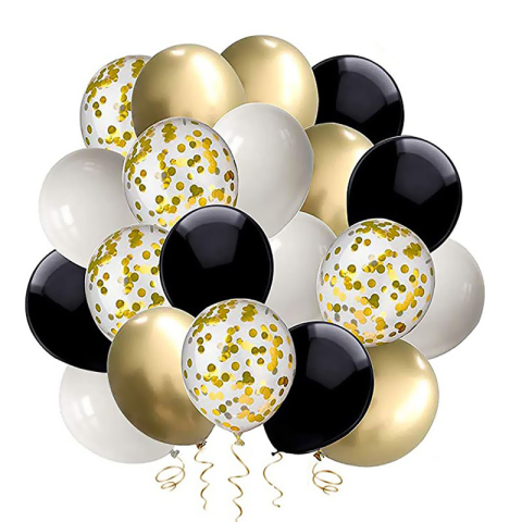 Információk 50 db arany és fekete lufi készlet. A bemutatott léggömbkészlet elválaszthatatlan eleme az ünnepségek dekorációjának, amely egyedi hangulatot kölcsönöz. Léggömbjeink gyönyörűen díszítik a születésnapi partit, a névnapi partit, az esküvői pa