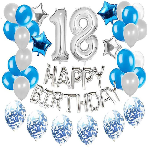 Információk Születésnapi lufikészlet 18. születésnapra, ezüst/kék. A születésnapi lufikészlet lehetővé teszi a gyermek születésnapi partijának díszítését, amely egyedi hangulatot kölcsönöz. Az eredeti dekorációknak köszönhetően a buli felejthetetlen le