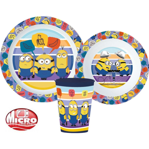 Minyonok étkészlet, micro műanyag szett, pohárral 260 ml Minions, Minyonok étkészlet, micro műanyag szett -BPA Mentes -Származási ország: Spanyolország -A termék környezetbarát, újrahasznosítható anyagból készült a Föld védelmében. Csomagolás nélkül!