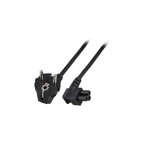 Notebook mikiegér tápkábel mindkét végén hajlított 90 fokos csatlakozóval. Schuko E+F 90° angled to C5 90° angled Hossz: 1.8m 3x0.75mm2 Szín: fekete